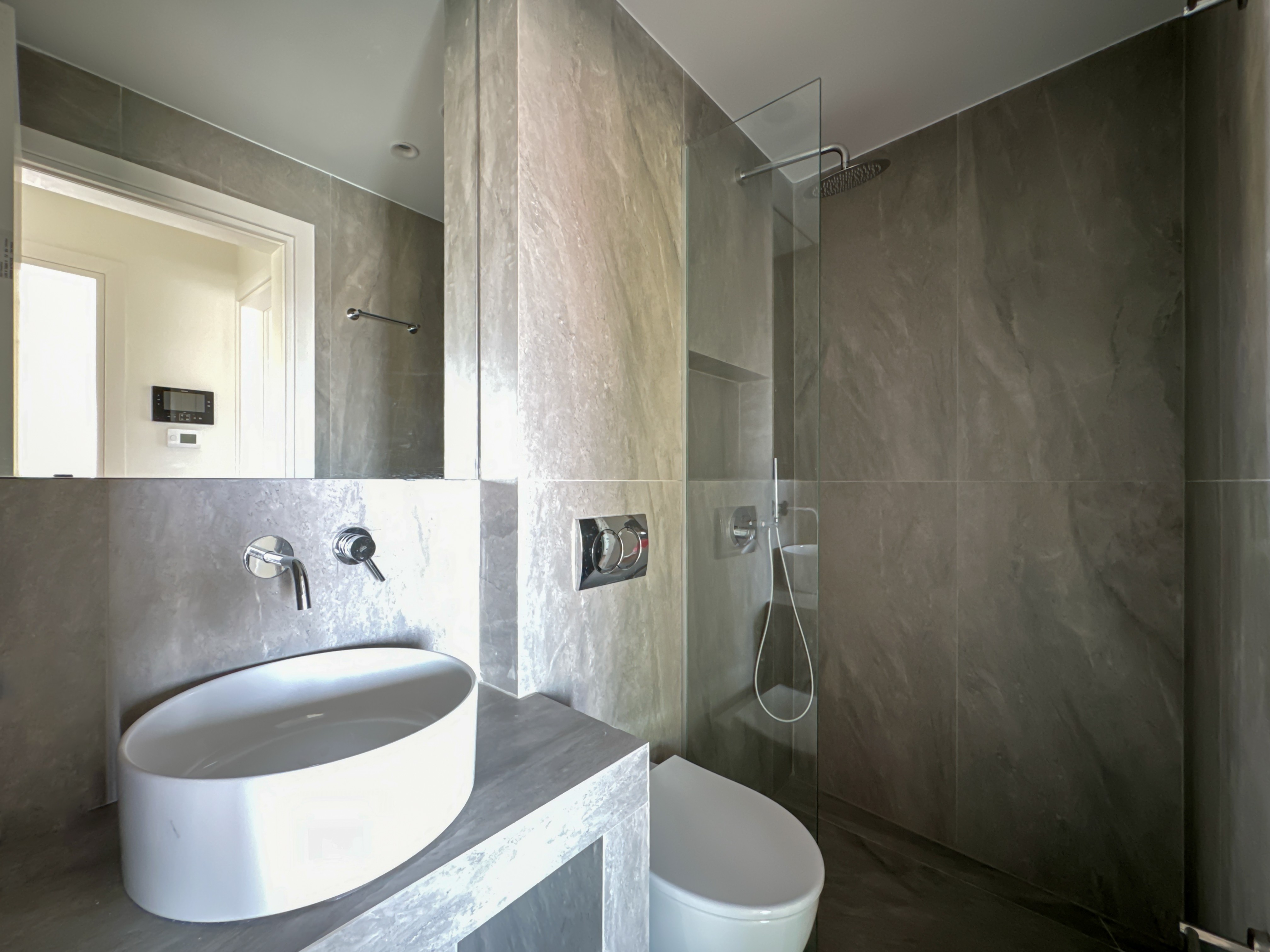 Η θέρμανση των επιμέρους χώρων πραγματοποιείται μέσω ενδοδαπέδιας θέρμανσης, η οποία τροφοδοτείται από λέβητα φυσικού αερίου.