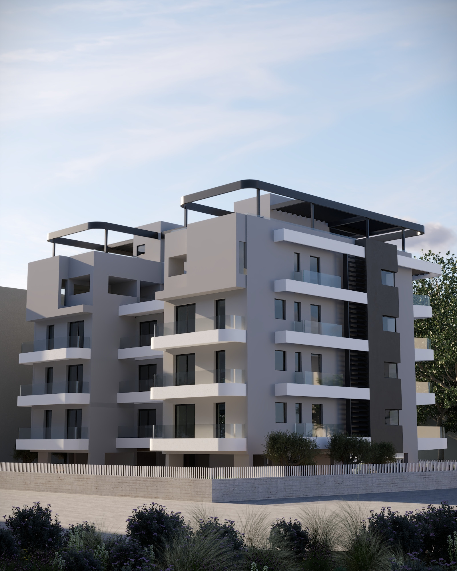 A five-story structure with a ground floor and basement will be constructed at 59 Eleftheriou Venizelou Street in Cholargos. It is situated in the heart of Cholargos, a short walk from the neighborhood's main market. High-quality materials will be used in the project's construction, and decorative materials will be used to finish the parking lots, fences, and surrounding landscaping, all of which will contribute to an outstanding visual outcome.